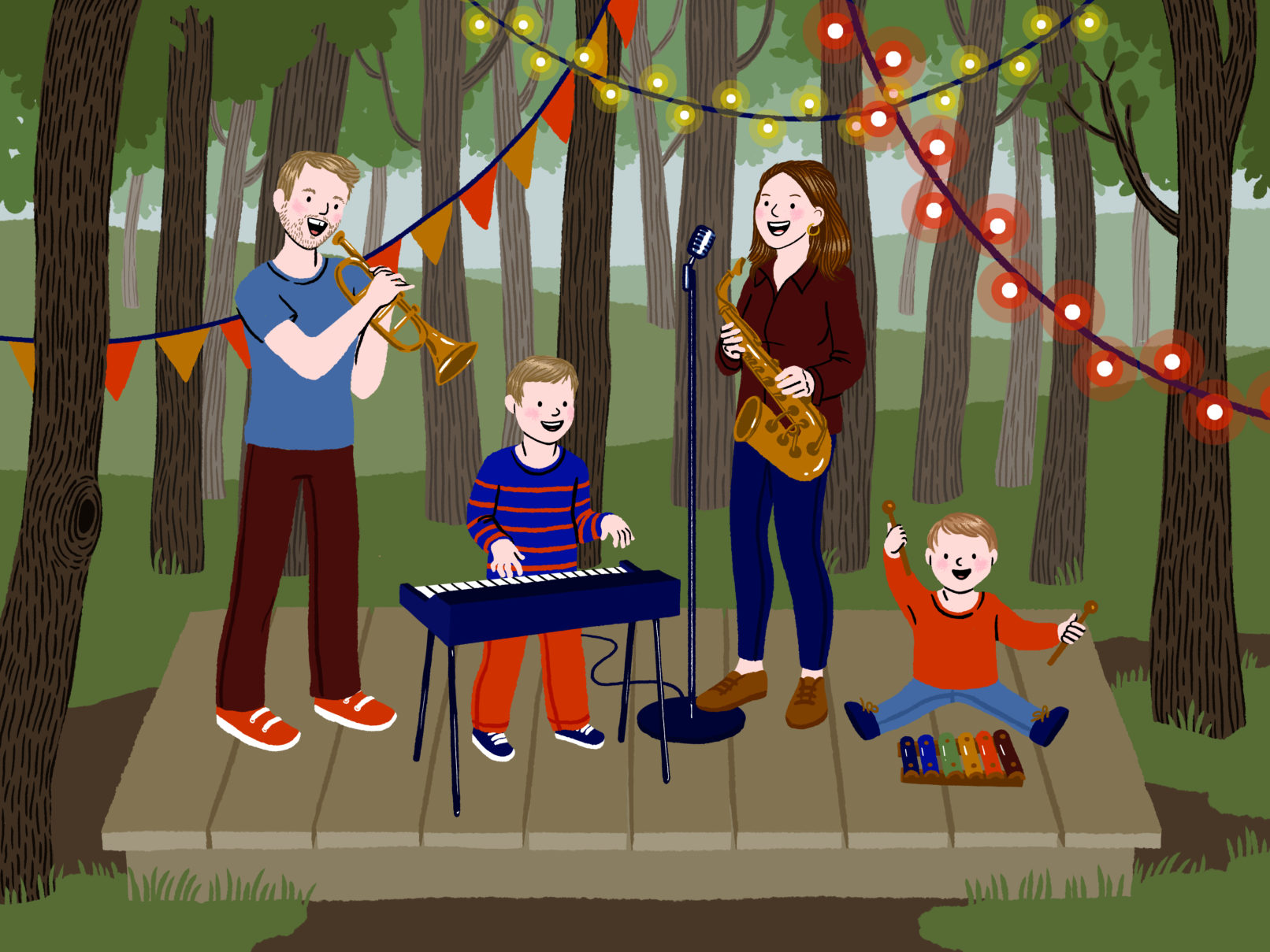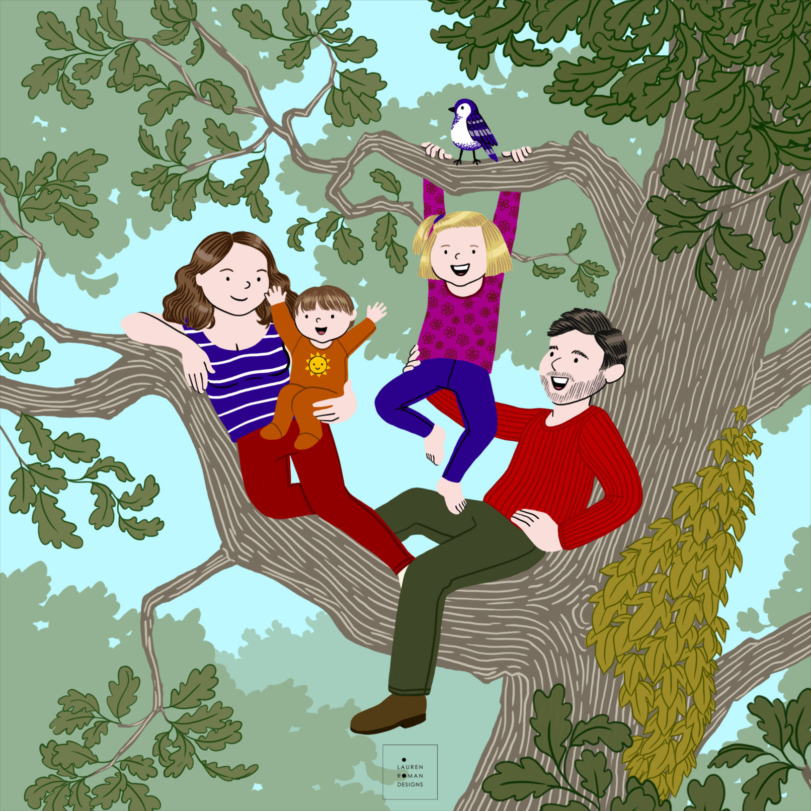 Portraits de famille personnalisés, pensés sur-mesure par rapport aux goûts et passions des parents et des enfants.