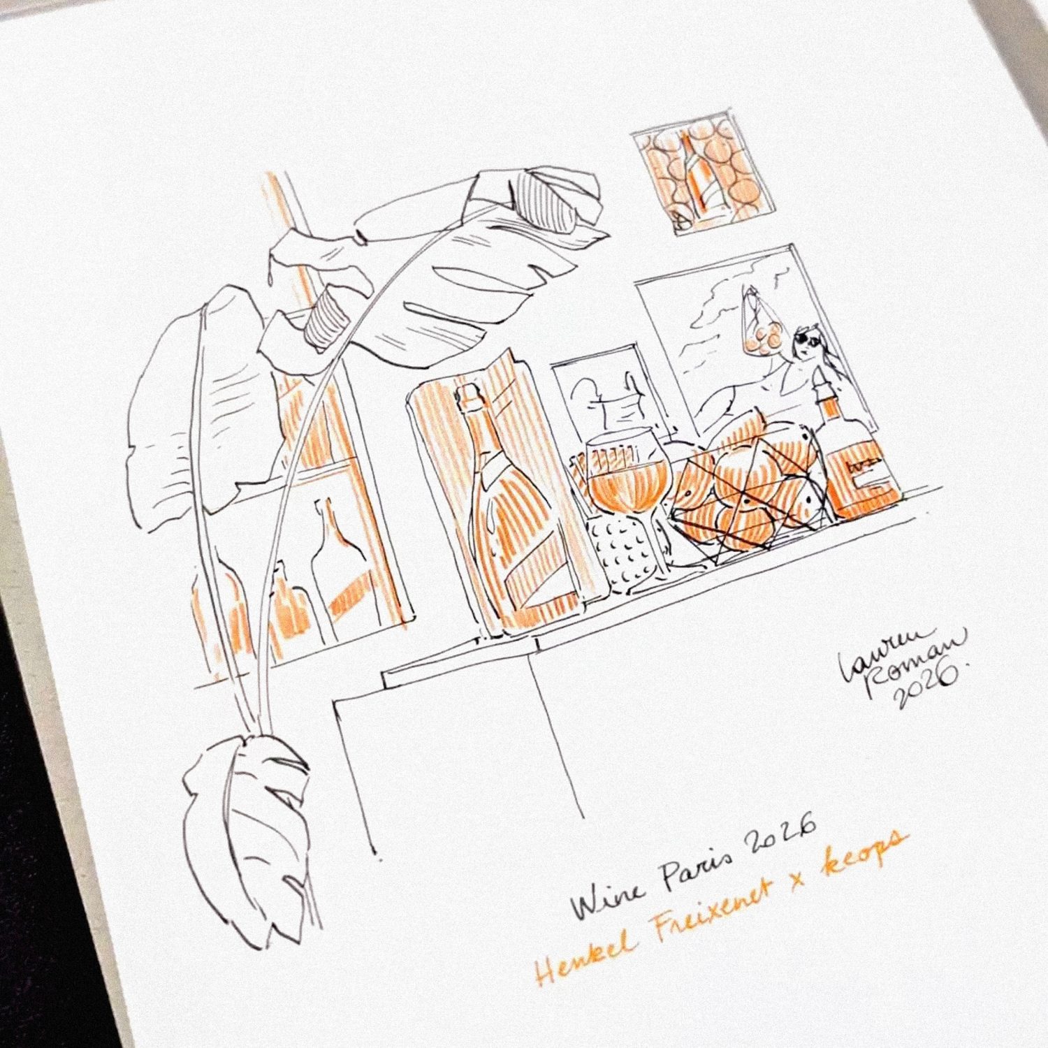 Suivie par un vidéaste, j’ai été invitée par keops, agence de design d’espaces d’exposition, à déambuler parmi les stands du salon Wine Paris et à réaliser sur le vif des croquis des stands qu’ils ont conçus pour divers domaines viticoles.